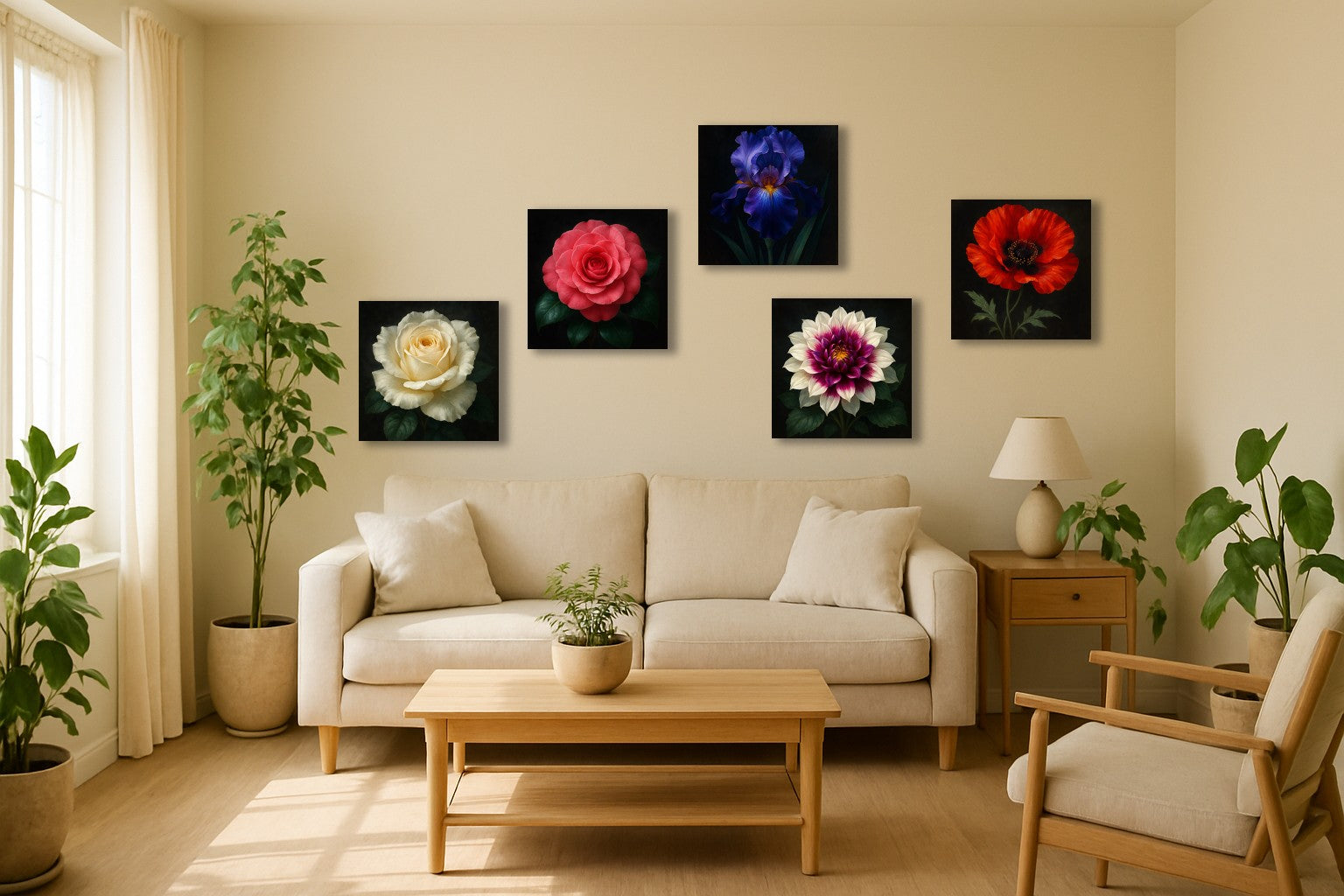 Un coquelicot d’un rouge incandescent se détache sur un fond sombre, ses pétales vibrants semblant capturer la lumière du feu. Au cœur, un noir profond ponctué de nuances dorées intensifie le contraste et souligne la délicatesse de la fleur. Cette toile allie puissance et fragilité, évoquant la beauté éphémère et la force de la nature. Elle apportera une touche de caractère et de poésie à un salon contemporain ou à une chambre lumineuse.