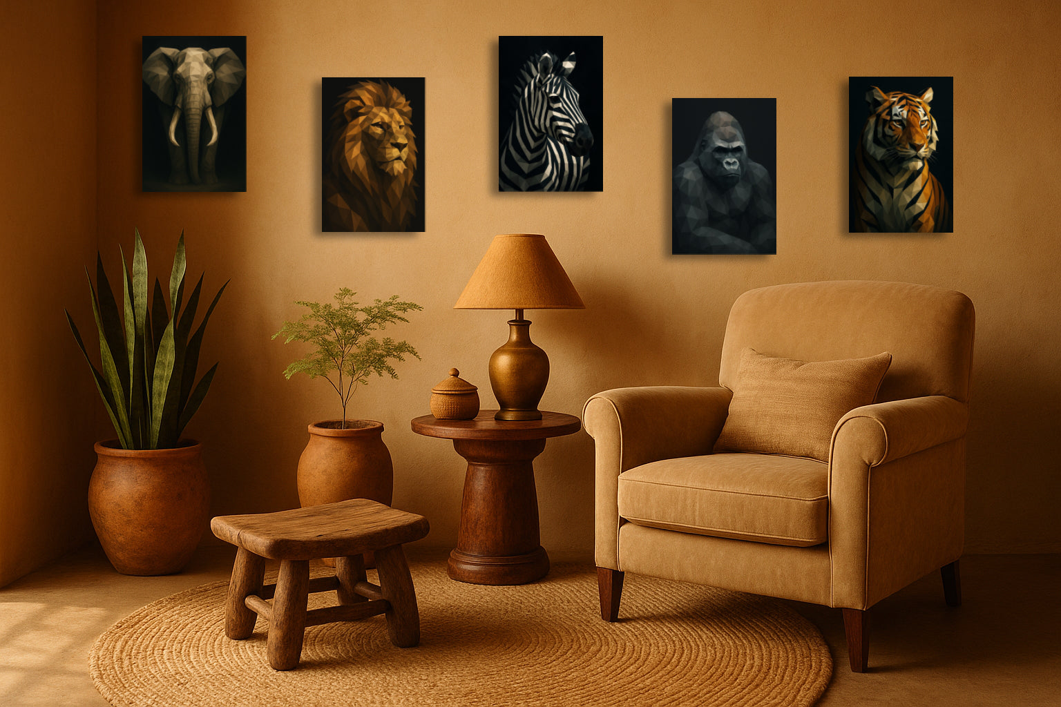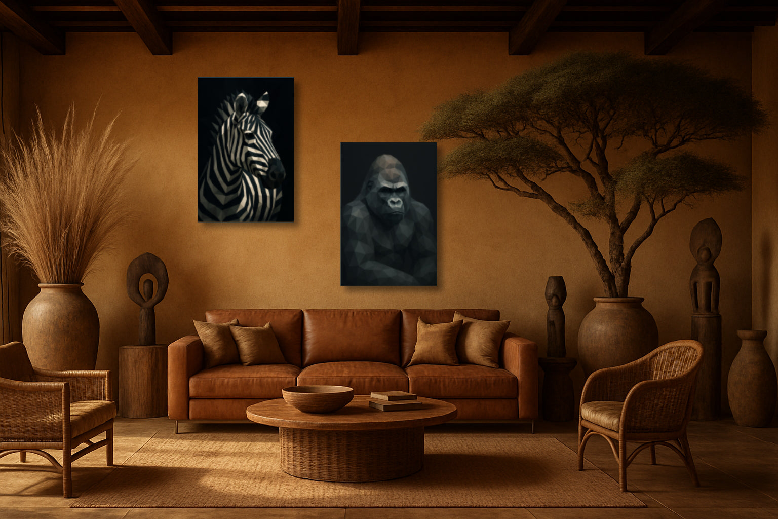 Ce gorille monumental, modelé en facettes sombres et subtiles nuances de gris, impose une présence calme et profonde. La lumière frôle à peine les plans anguleux du visage, révélant une expression grave et méditative. L’ensemble dégage une puissance contenue, presque sculpturale, idéale pour un salon contemporain, un bureau élégant ou un espace recherchant une atmosphère épurée et intense.