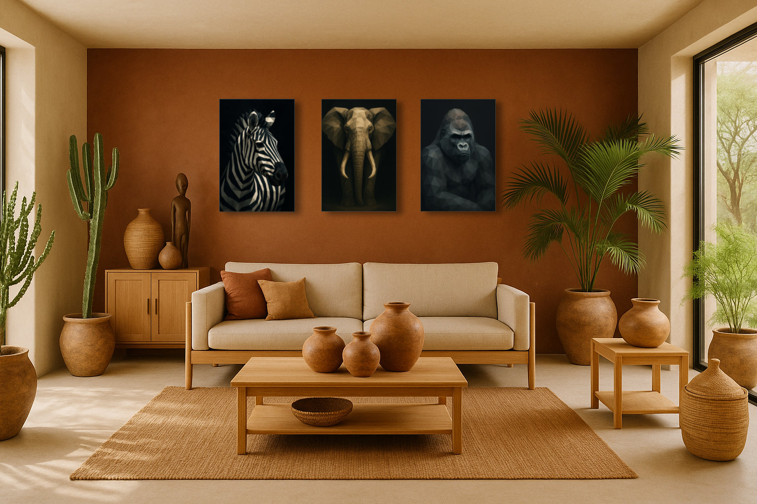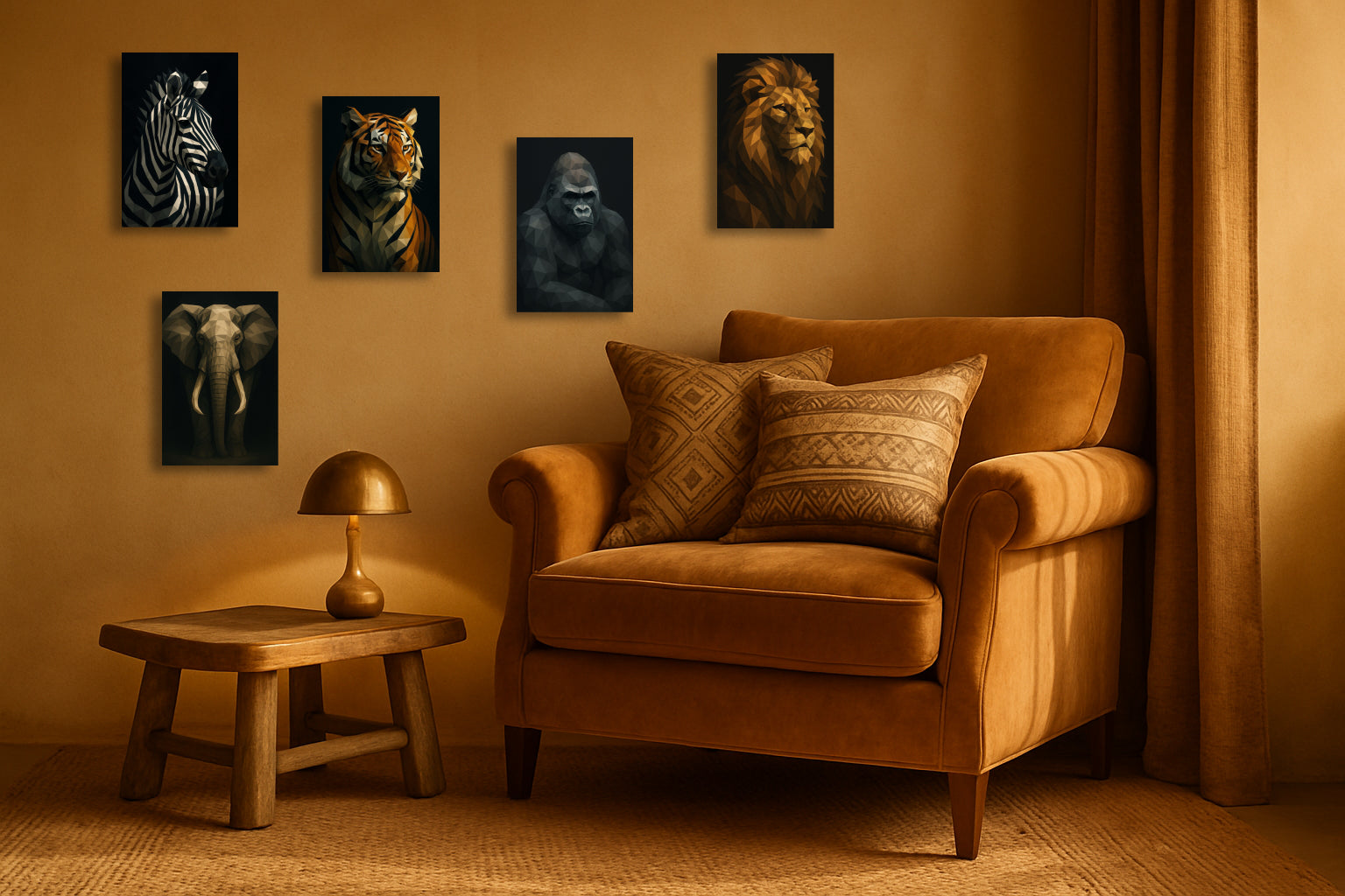 Ce zèbre stylisé, composé de facettes anguleuses et d’un jeu graphique noir et beige, se détache avec élégance sur un fond sombre et profond. Les lignes abruptes de sa robe deviennent un motif presque architectural, mêlant force animale et design contemporain. Une pièce raffinée, au contraste saisissant, parfaite pour un salon moderne, une entrée minimaliste ou un bureau recherchant une touche artistique affirmée.